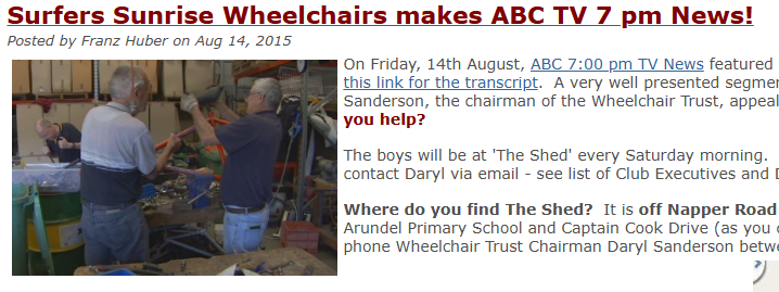 The club recently invested in a professional class emailing system, to send out direct emails and updates to our valued Wheelchairs Trust donors. Following the broadcast of our project on Channel 9 - 'A Current Affair', we had almost 300 donors responding. Last night (Sunday), we sent out a "formal" thank you to our donors. It was lovely to receive, almost immediately, a reply from one of our donors: