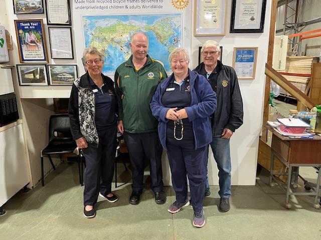 This morning, we welcomed guests from the Sunshine Coast: President Kerry & Lyn Naumann, Lorraine Buhk and Tim Fraser from the Mooloolabah Lions Club, a major donor to our 'Rough Terrain' wheelchairs project, visited the wheelchair project shed this morning. Welcome to the Gold Coast!